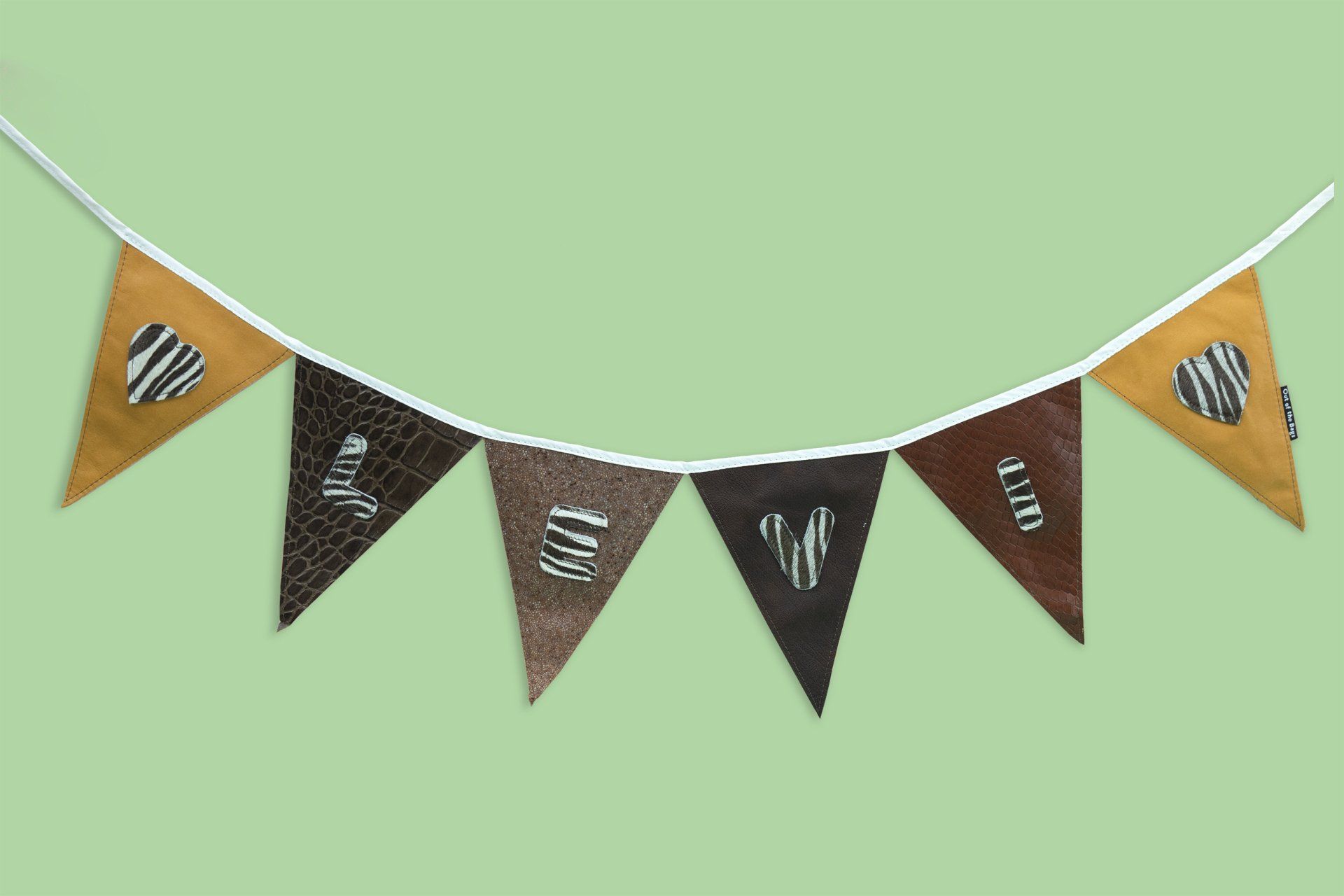 De vlaggetjes zijn aan de voorkant van leer met aan de achterkant een leuk bijpassend stofje.