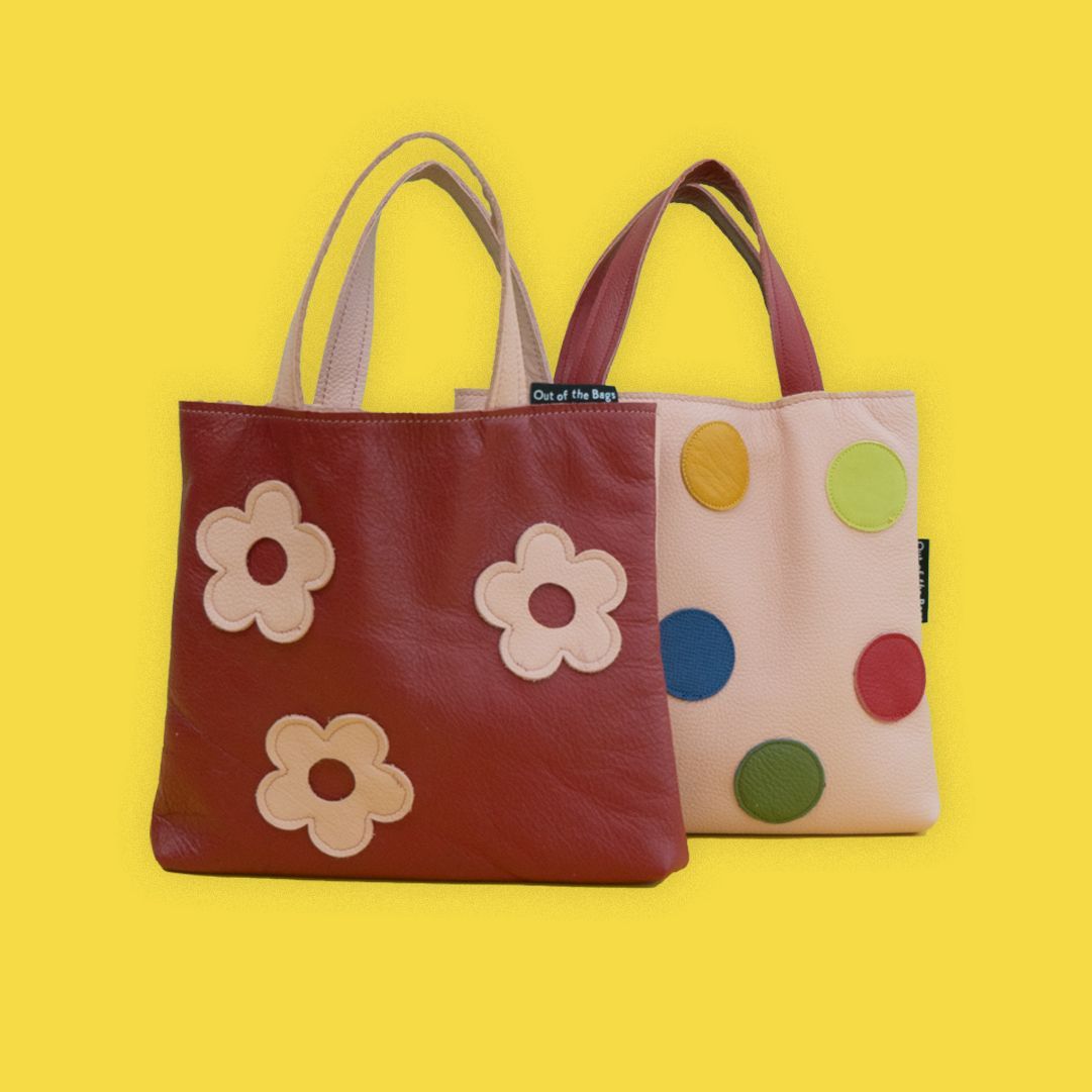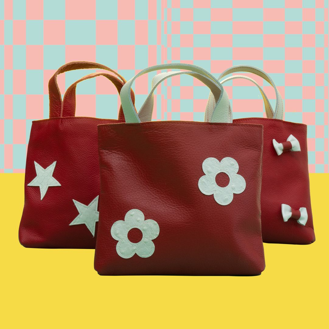 Zijn ze niet cute? Deze echt leren tasjes voor de mini boodschapjes of voor gymspullen voor je kleuter. Op bestelling ook in andere gewenste kleuren/dessins leverbaar.