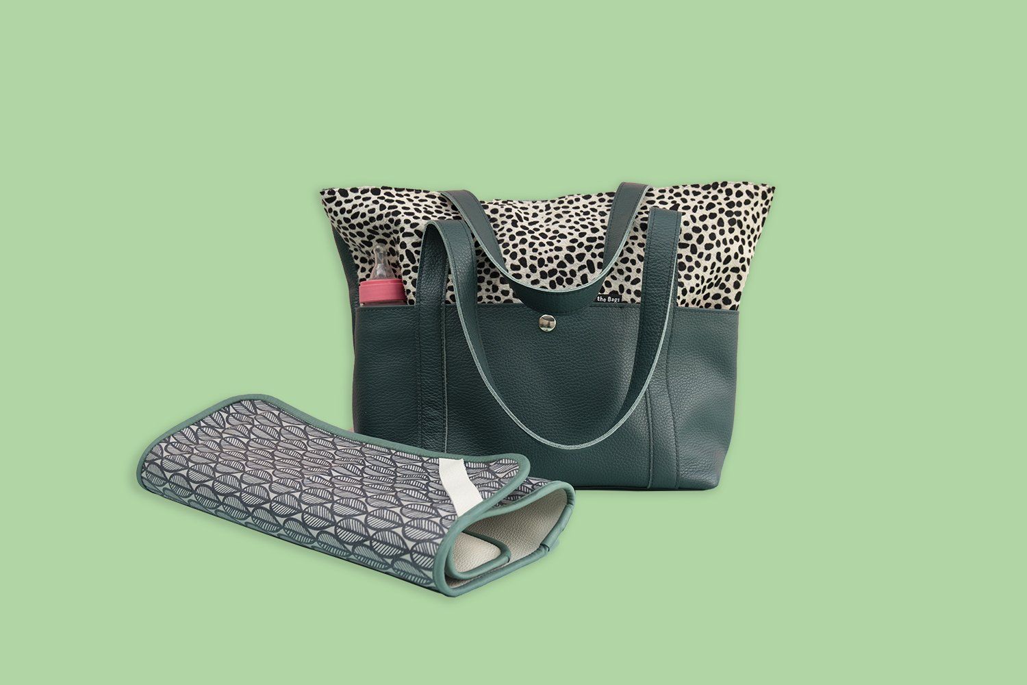 Uitgevoerd in eerste kwaliteit zacht rundleer in teale kleur, gecombineerd met een vachtje in leopard. De tas is gevoerd met waterafstotend gewaxte katoen en uitgevoerd met speciale vakjes voor een verschoonmatje (niet bijgeleverd) luiers en flesjes.